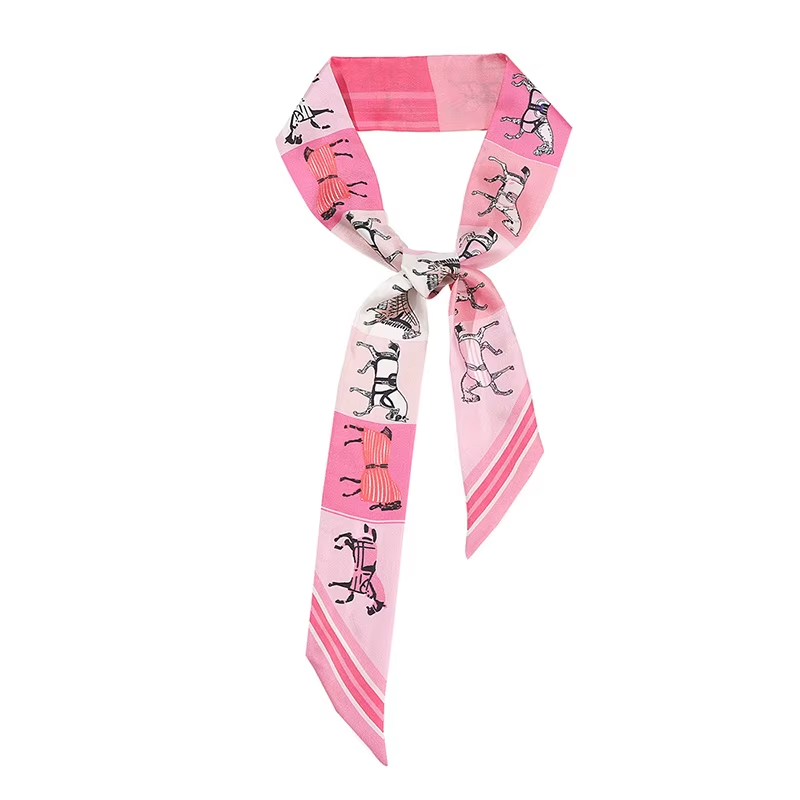 Wzbogać swoją ulubioną torebkę o ten uroczy, wąski szalik z motywem jeździeckim. Dzięki figlarnemu motywowi konia w żywych odcieniach różu i klasycznym paskom ten wszechstronny dodatek doda odrobinę elegancji każdej stylizacji.