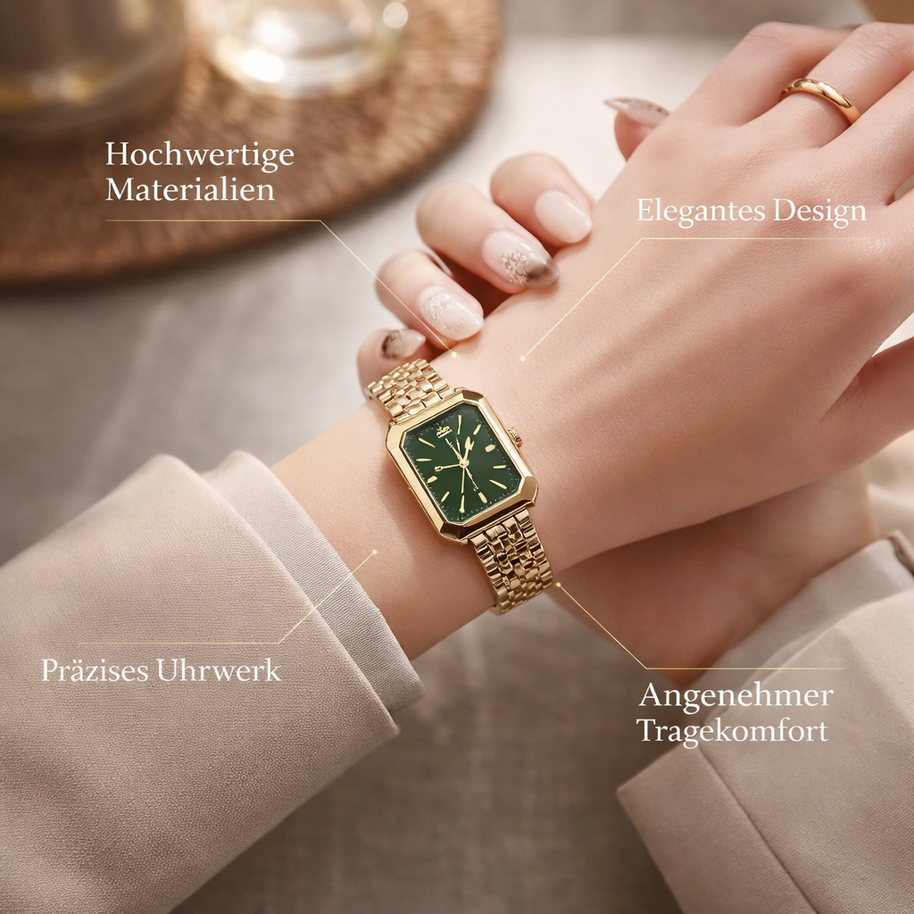 Design: Schlankes, rechteckiges Zifferblatt mit klaren Linien